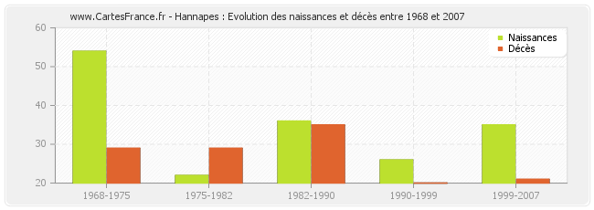 Hannapes : évolution des naissances et décès de 1968 à 2007