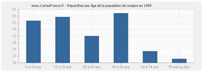 - Population de Lempire de 45 à 59 ans : 23 habitants