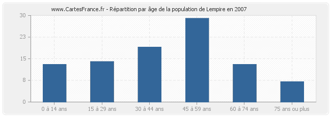 - Population de Lempire de 45 à 59 ans : 29 habitants