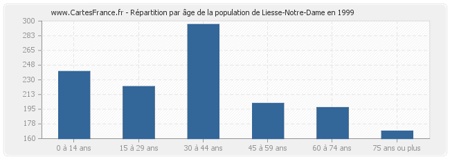 - Population de Liesse-Notre-Dame de 30 à 44 ans : 296 habitants
