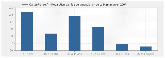 - Population de La Malmaison de 0 à 14 ans : 110 habitants