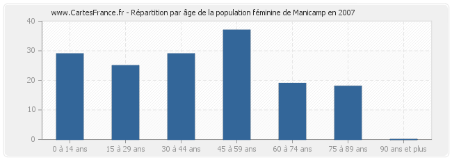 Répartition de la population féminine de Manicamp par âge en 2007 :