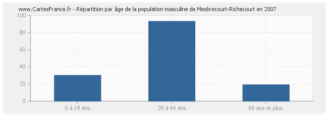- Hommes de 20 à 64 ans habitant Mesbrecourt-Richecourt : 93