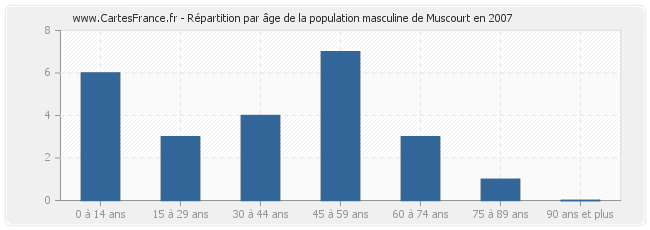 Répartition de la population masculine de Muscourt par âge en 2007 :