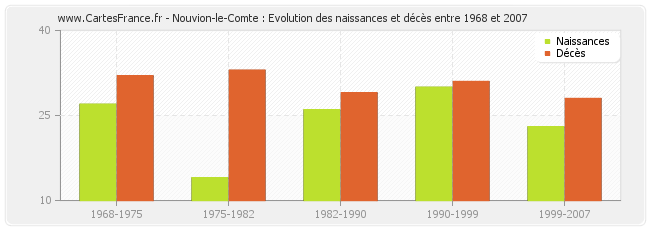 Nouvion-le-Comte : évolution des naissances et décès de 1968 à 2007