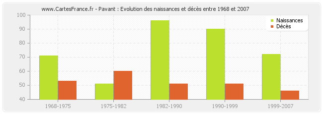 Pavant : évolution des naissances et décès de 1968 à 2007