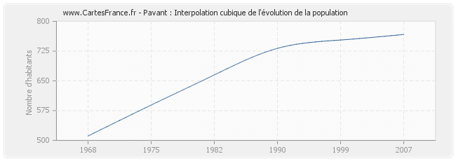 Cette courbe reprend l'historique de la population de Pavant de 1968 à 2007 en interpolation cubique. Ceci permet d'obtenir plus précisément la population de la commune de Pavant les années ou aucun recensement n'a été effectué.