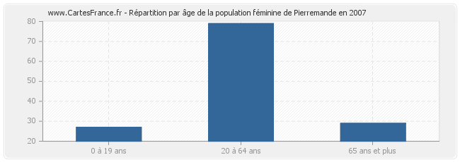Répartition de la population féminine de Pierremande par âge en 2007 :