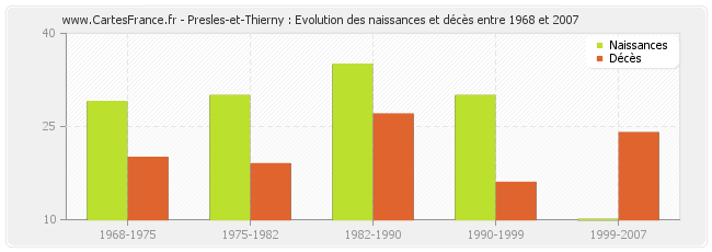 Presles-et-Thierny : évolution des naissances et décès de 1968 à 2007