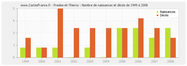 Presles-et-Thierny : naissances et décès de 1999 à 2008