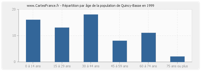 Répartition de la population de Quincy-Basse par âge en 1999 :