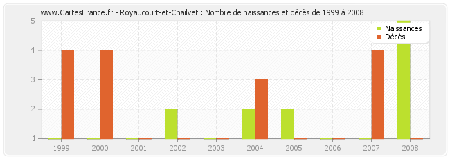 Royaucourt-et-Chailvet : naissances et décès de 1999 à 2008