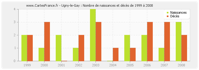 Ugny-le-Gay : naissances et décès de 1999 à 2008