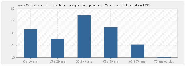 - Population de Vaucelles-et-Beffecourt de 30 à 44 ans : 53 habitants
