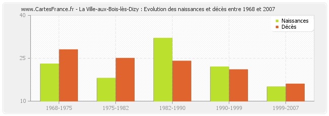 La Ville-aux-Bois-lès-Dizy : évolution des naissances et décès de 1968 à 2007