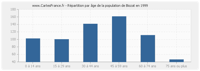 - Population de Biozat de 45 à 59 ans : 161 habitants