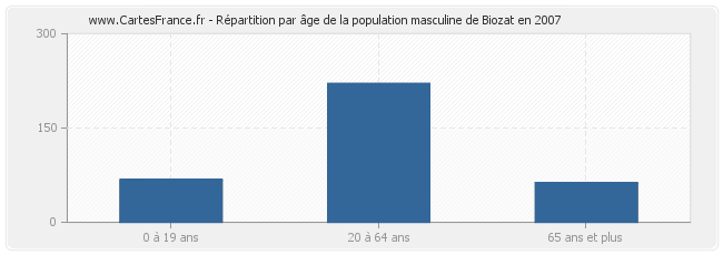 Répartition de la population masculine de Biozat par âge en 2007 :