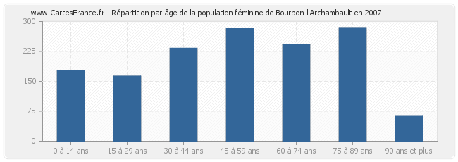 - Femmes de 75 à 90 ans habitant Bourbon-l'Archambault : 283