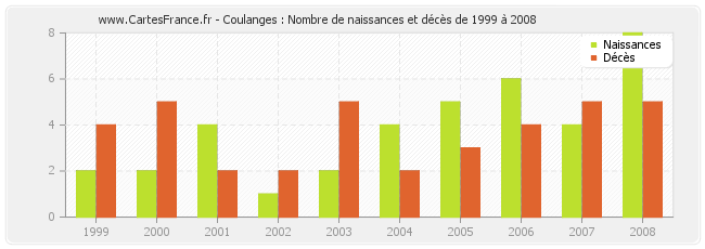 - Coulanges en 2008 : 8 naissances et 5 décès