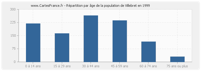 - Population de Villebret de 30 à 44 ans : 264 habitants