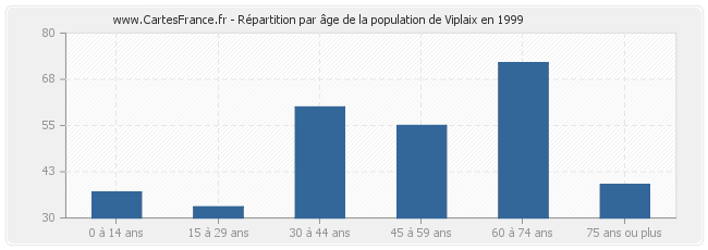 - Population de Viplaix de 60 à 74 ans : 72 habitants