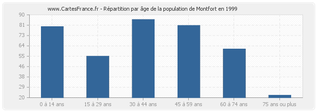 - Population de Montfort de 75 ans ou plus : 22 habitants