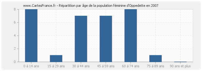 - Femmes de 0 à 14 ans habitant Oppedette : 8