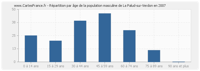 - Hommes de 45 à 59 ans habitant La Palud-sur-Verdon : 46