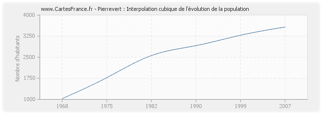 Cette courbe reprend l'historique de la population de Pierrevert de 1968 à 2007 en interpolation cubique. Ceci permet d'obtenir plus précisément la population de la commune de Pierrevert les années ou aucun recensement n'a été effectué.