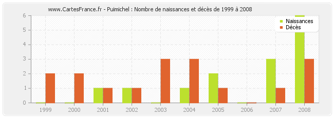 - Puimichel en 2008 : 6 naissances et 3 décès