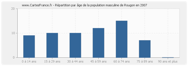 Répartition de la population masculine de Rougon par âge en 2007 :