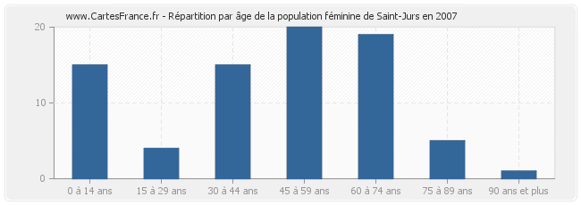 - Femmes de 45 à 59 ans habitant Saint-Jurs : 20