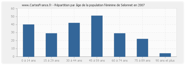 - Femmes de 45 à 59 ans habitant Selonnet : 51
