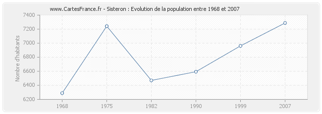 La population de Sisteron était de 7 288 habitants en 2007, 6 962 habitants en 1999, 6 594 habitants en 1990, 6 470 habitants en 1982, 7 243 habitants en 1975 et 6 289 habitants en 1968.