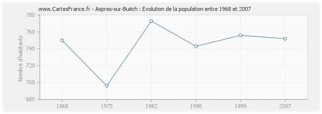 - Population d'Aspres-sur-Buëch en 2007 : 752 habitants