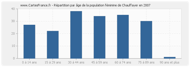 Répartition de la population féminine de Chauffayer par âge en 2007 :