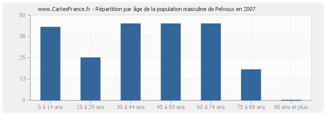 Répartition de la population masculine de Pelvoux par âge en 2007 :