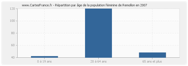Répartition de la population féminine de Remollon par âge en 2007 :