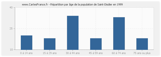 Répartition de la population de Saint-Disdier par âge en 1999 :