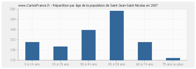 - Population de Saint-Jean-Saint-Nicolas de 45 à 59 ans : 197 habitants