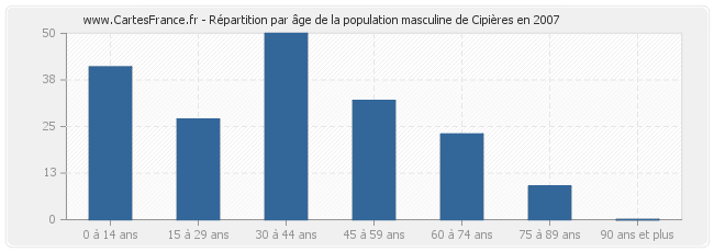 - Hommes de 30 à 44 ans habitant Cipières : 50
