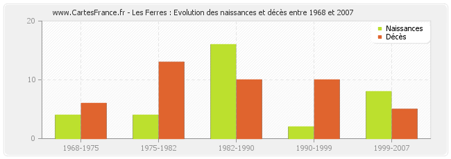 Les Ferres : évolution des naissances et décès de 1968 à 2007