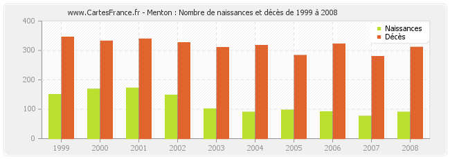 - Femmes de 90 ans ou plus habitant Menton : 382