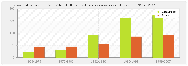 Saint-Vallier-de-Thiey : évolution des naissances et décès de 1968 à 2007