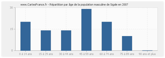 - Hommes de 45 à 59 ans habitant Sigale : 29