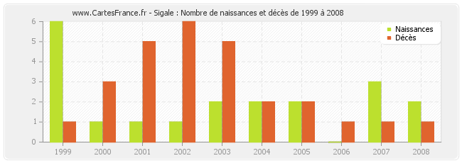 - Sigale en 2002 : 1 naissances et 6 décès