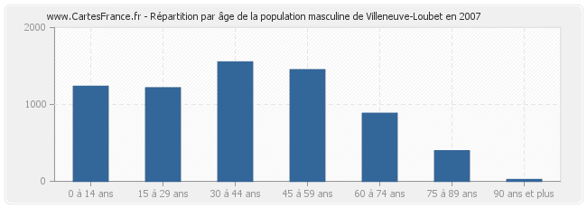 Répartition de la population masculine de Villeneuve-Loubet par âge en 2007 :