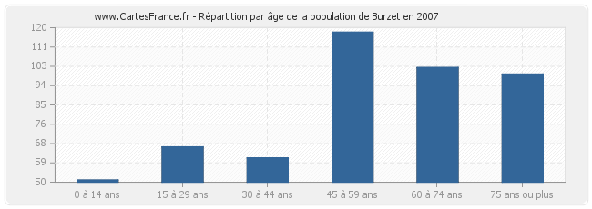 - Population de Burzet de 45 à 59 ans : 118 habitants
