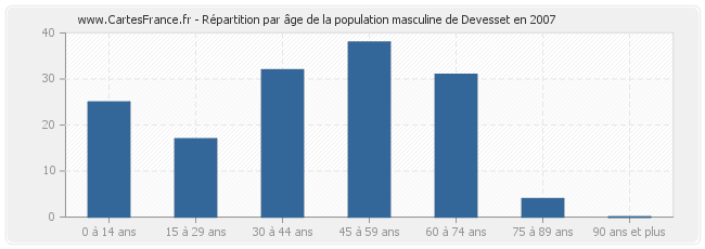 Répartition de la population masculine de Devesset par âge en 2007 :