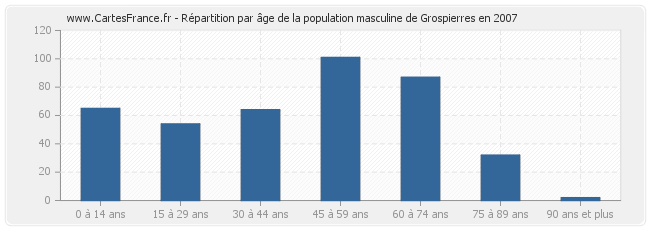 - Hommes de 45 à 59 ans habitant Grospierres : 101